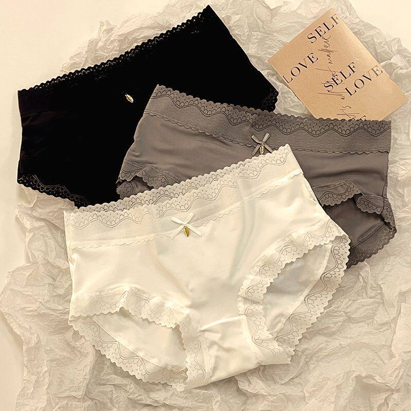 Non-marking panties women's ice silk antibacterial mid-high waist sexy lace summer thin comfortable breathable high-end briefs