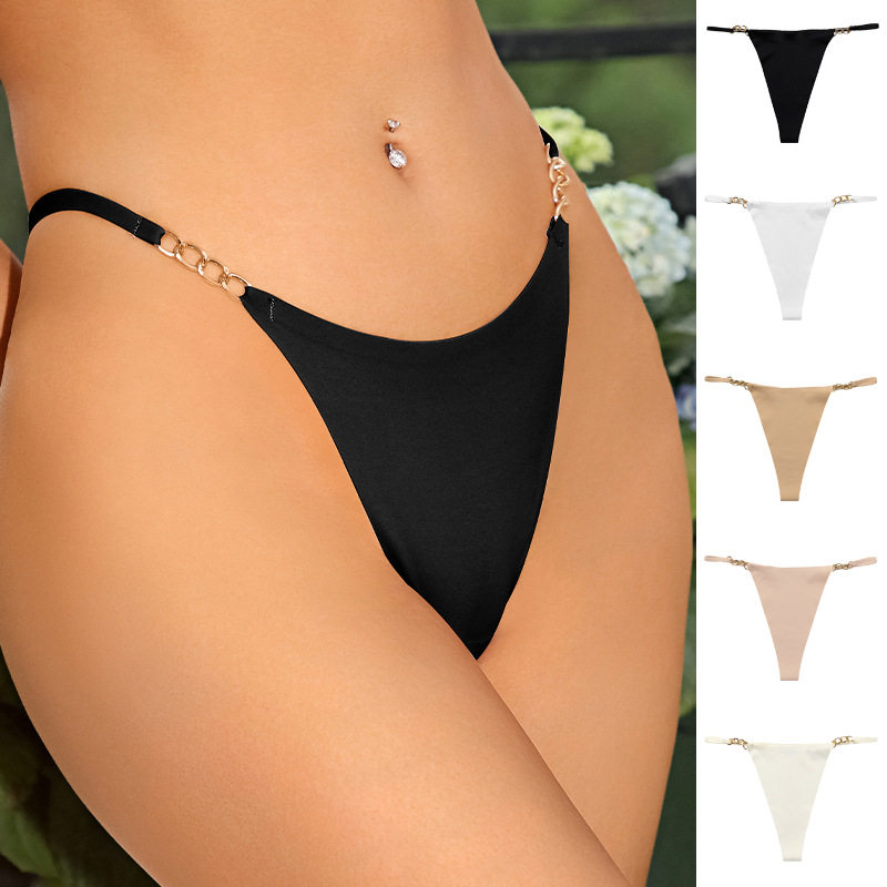 Sexy T-pants seamless one-piece cotton crotch breathable quick-drying panties Delicate metal loop women's thong