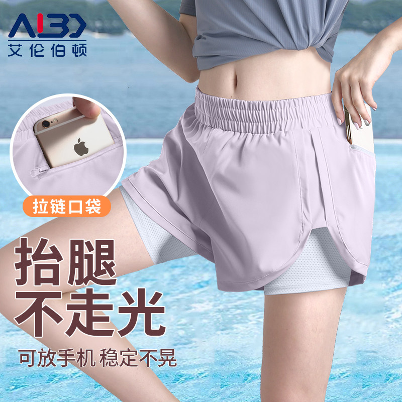 Swimming trunks women's anti-light fake two-piece boxer swimming shorts large size single piece double-layer quick-drying professional swimsuit into the water