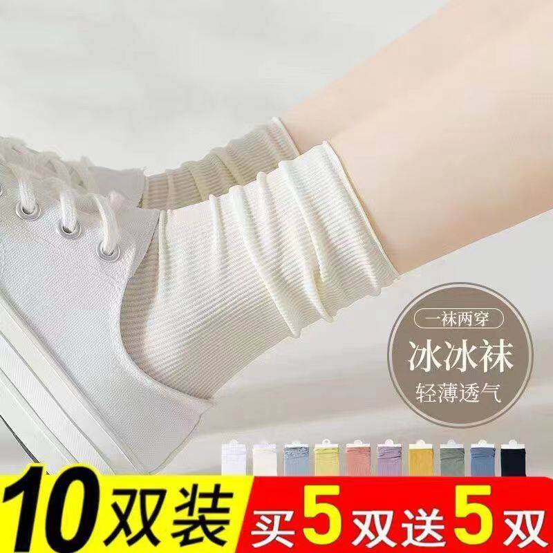 White ice pile socks for women's summer thin long tube summer spring and autumn thin stockings