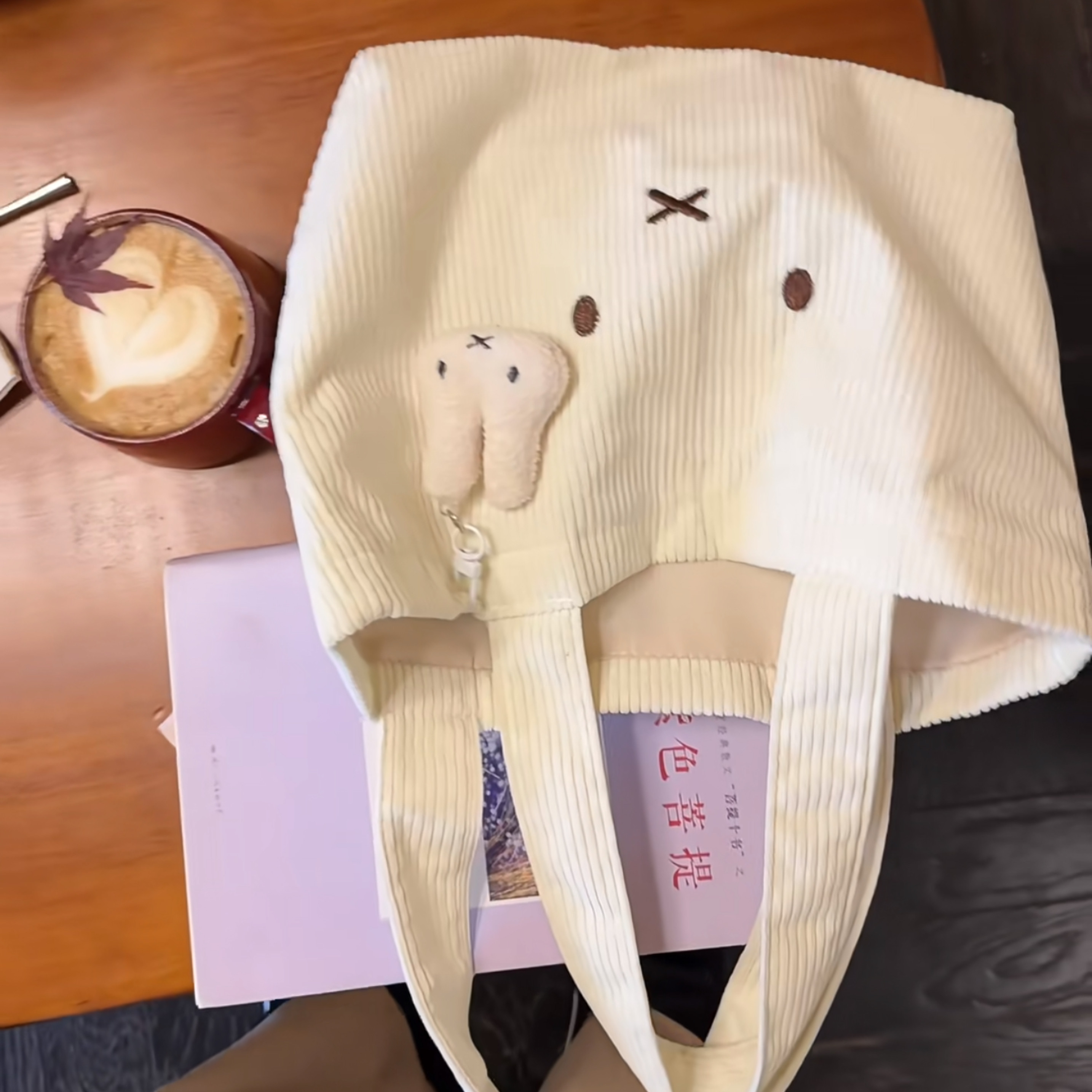 Cute rabbit large-capacity shoulder canvas bag for students commuting and office workers high-value storage tote satchel