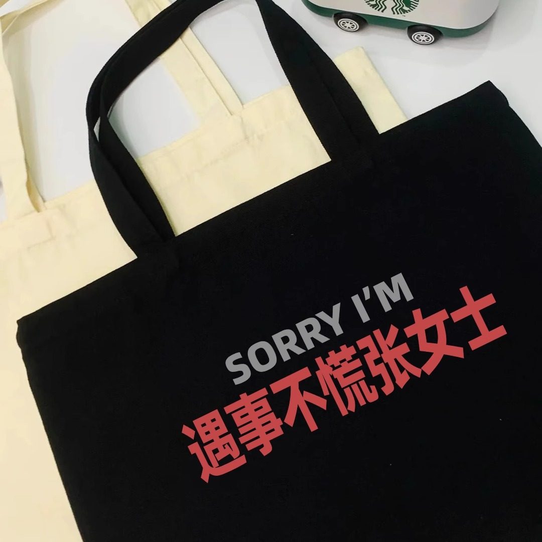 Sorry, don't panic in case of trouble, women's canvas bag, commuter bag, large capacity tote bag, men's and women's same versatile base