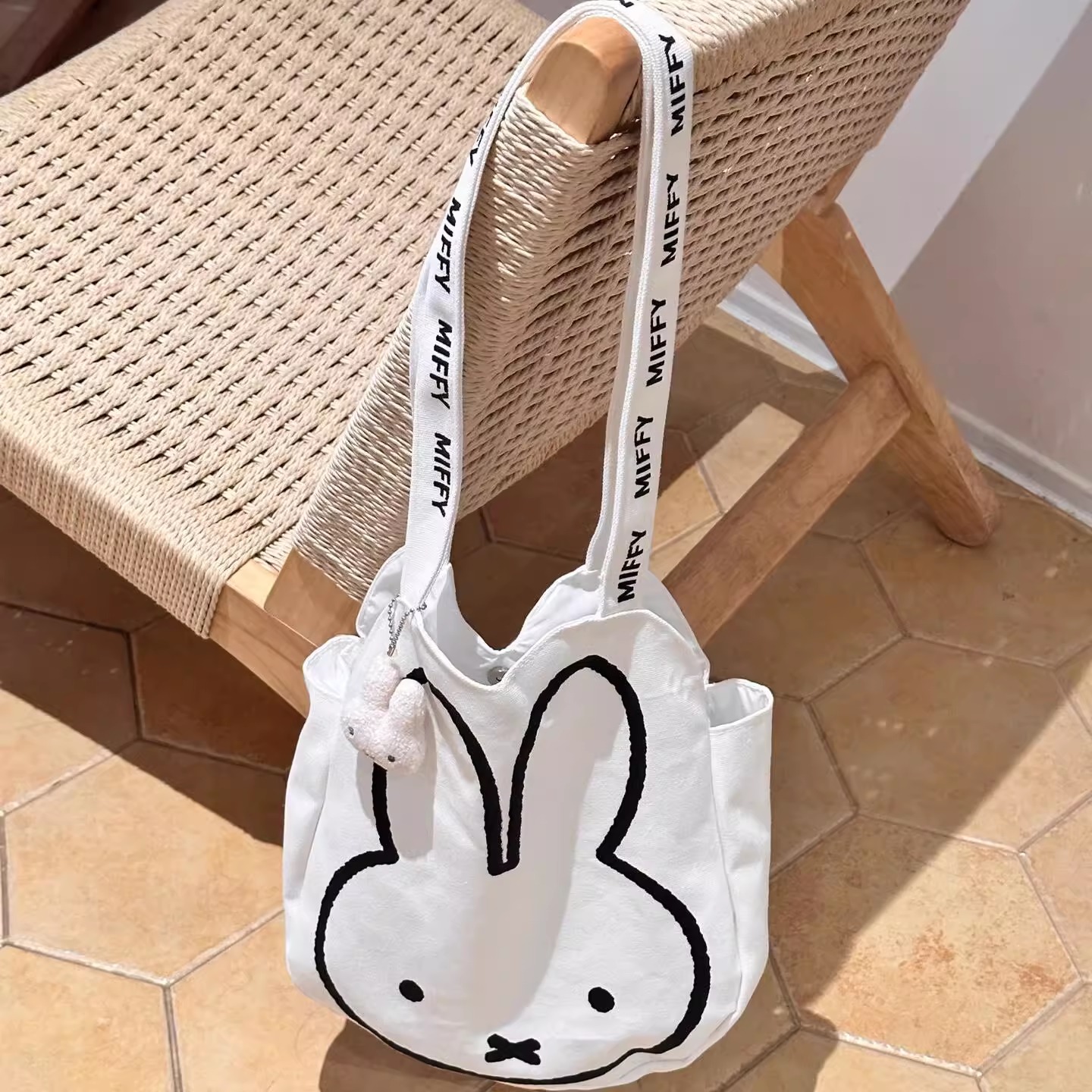 2025 New Cute Miffy Canvas Bag Summer Versatile Shoulder Bag Women's Large Capacity Printed Commuter Tote Bag