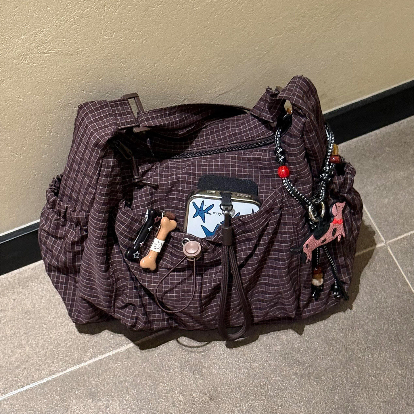 Plaid shoulder bag women's large capacity Korean retro dumpling bag niche versatile crossbody bag for commuting to school and work