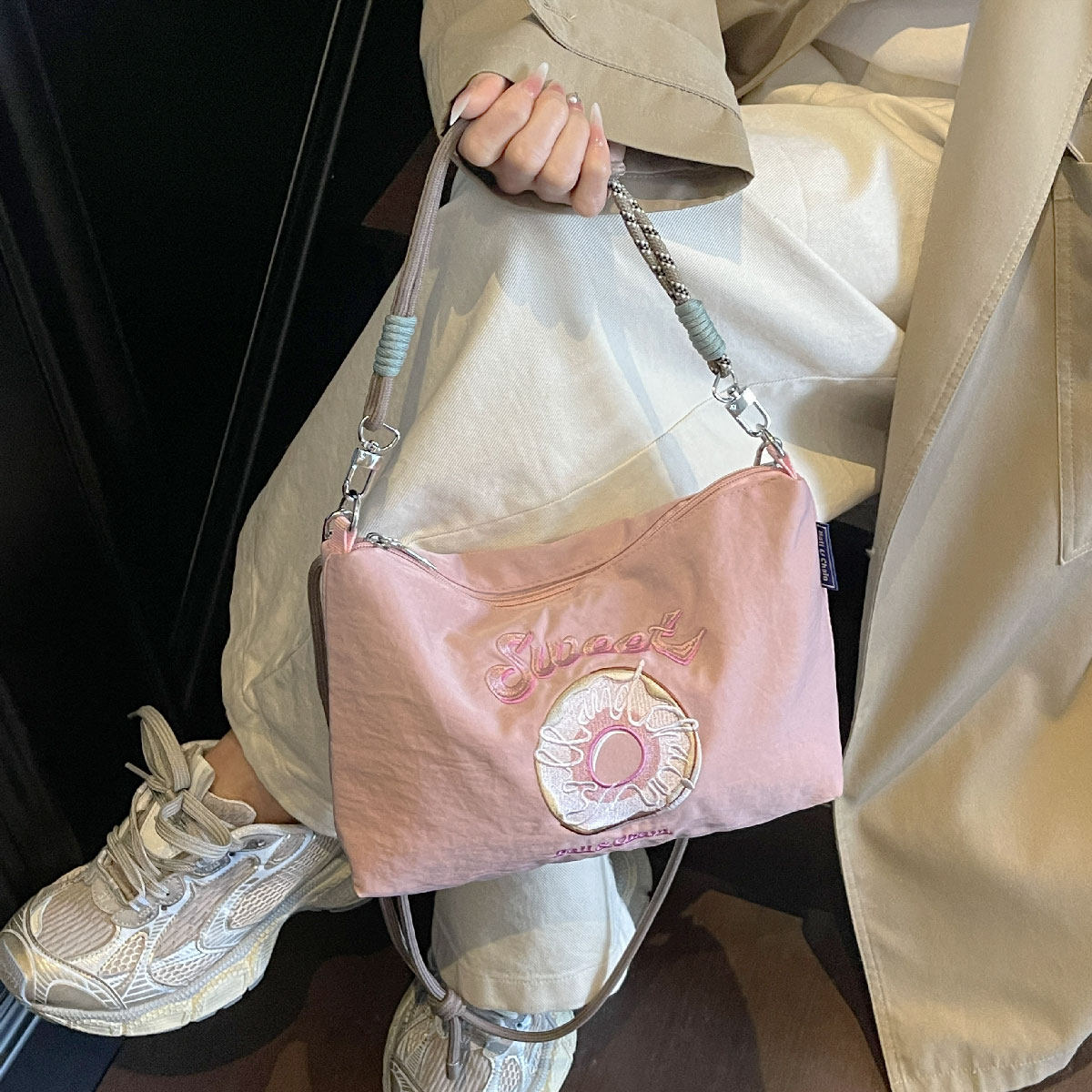 New simple casual versatile style ins embroidered nylon bag shopping commuting large capacity handbag lightweight