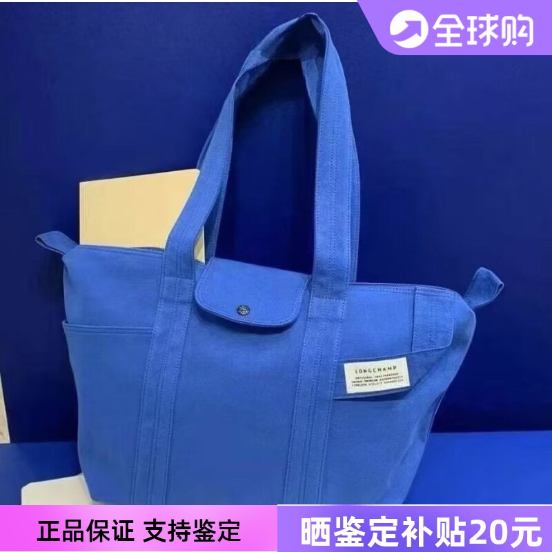 Longchamp 2025 new canvas series one-shoulder tote bag Atlantic blue
