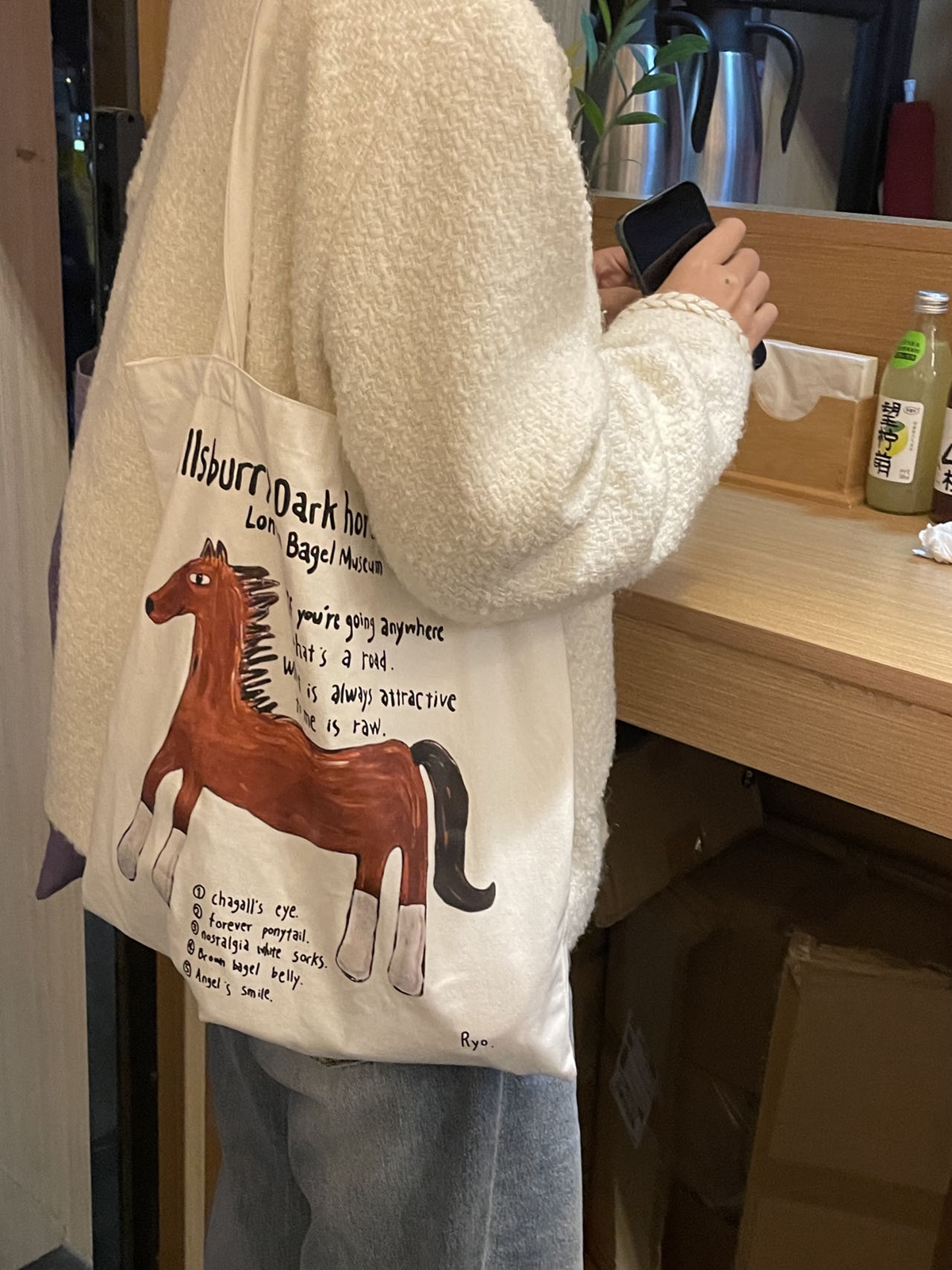 Youngforever London bagel Jeju pony canvas bag ins same coffee shop peripheral tote bag
