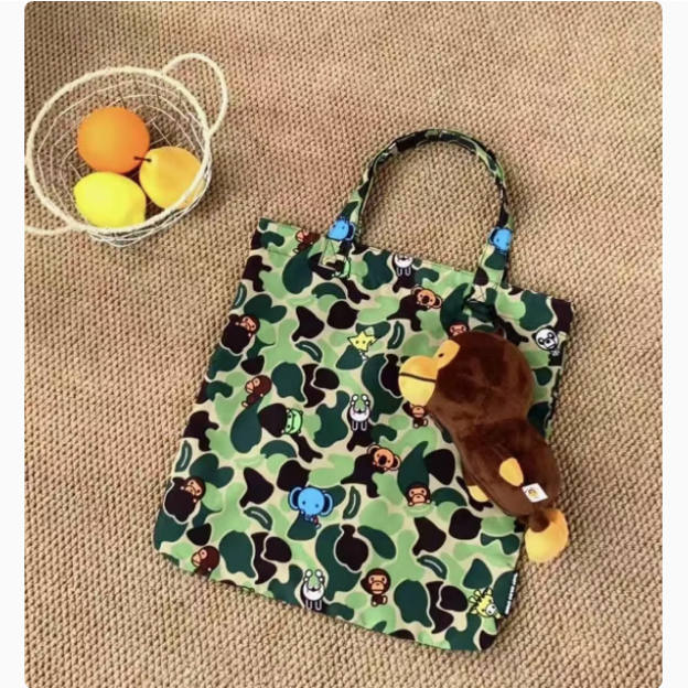 baby milo tote otaku girl green camouflage little monkey pattern can store eco-friendly bag tote shoulder bag