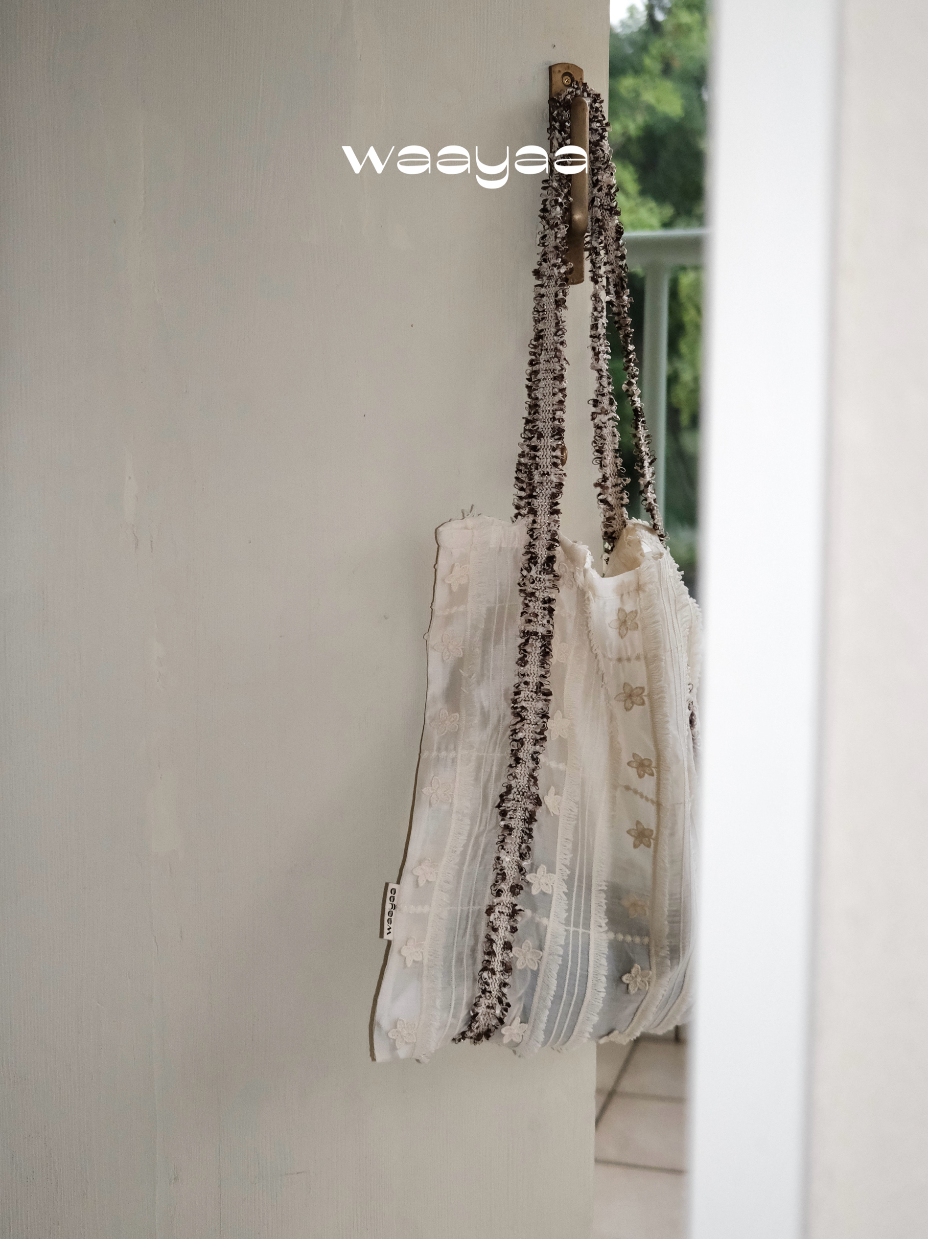 Hug waayaa original niche design flower webbing texture Tencel milk silk thread canvas bag gift