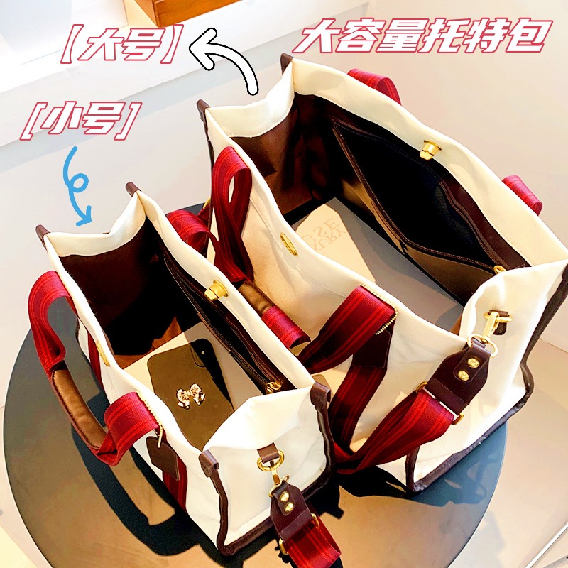 Red canvas bag tote bag women's large capacity 2025 new trendy college student tote bag for class one-shoulder crossbody bag
