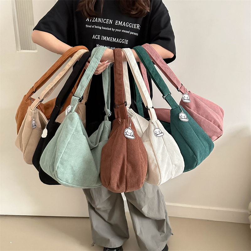 Dumpling bag women's Japanese ins versatile crossbody bag corduroy casual large-capacity student commuting shoulder bag