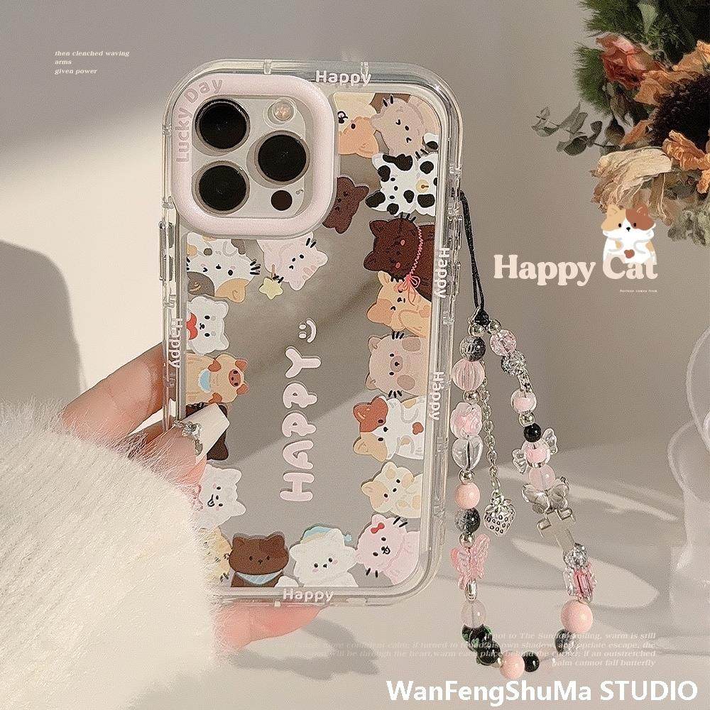 ins cute mirror cat for iPhone17Pro Max apple 16 phone case 15 Korean style 14 lanyard 13