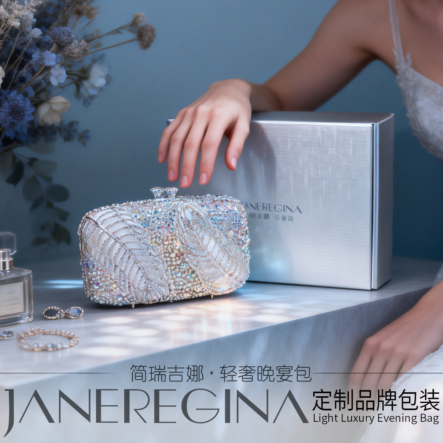White haute couture wedding dress bag banquet with light luxury clutch bag hollow leaf diamond cheongsam handbag