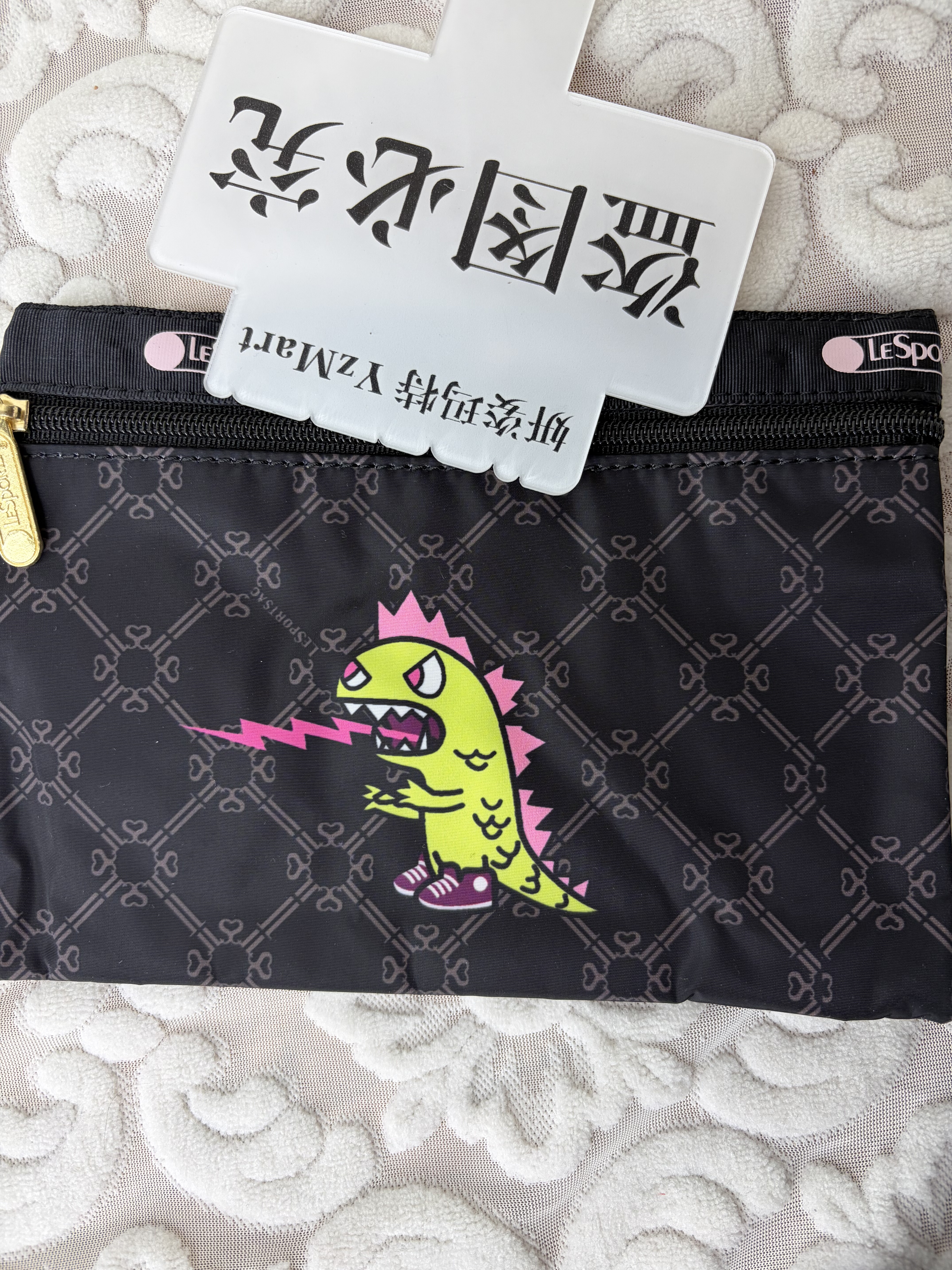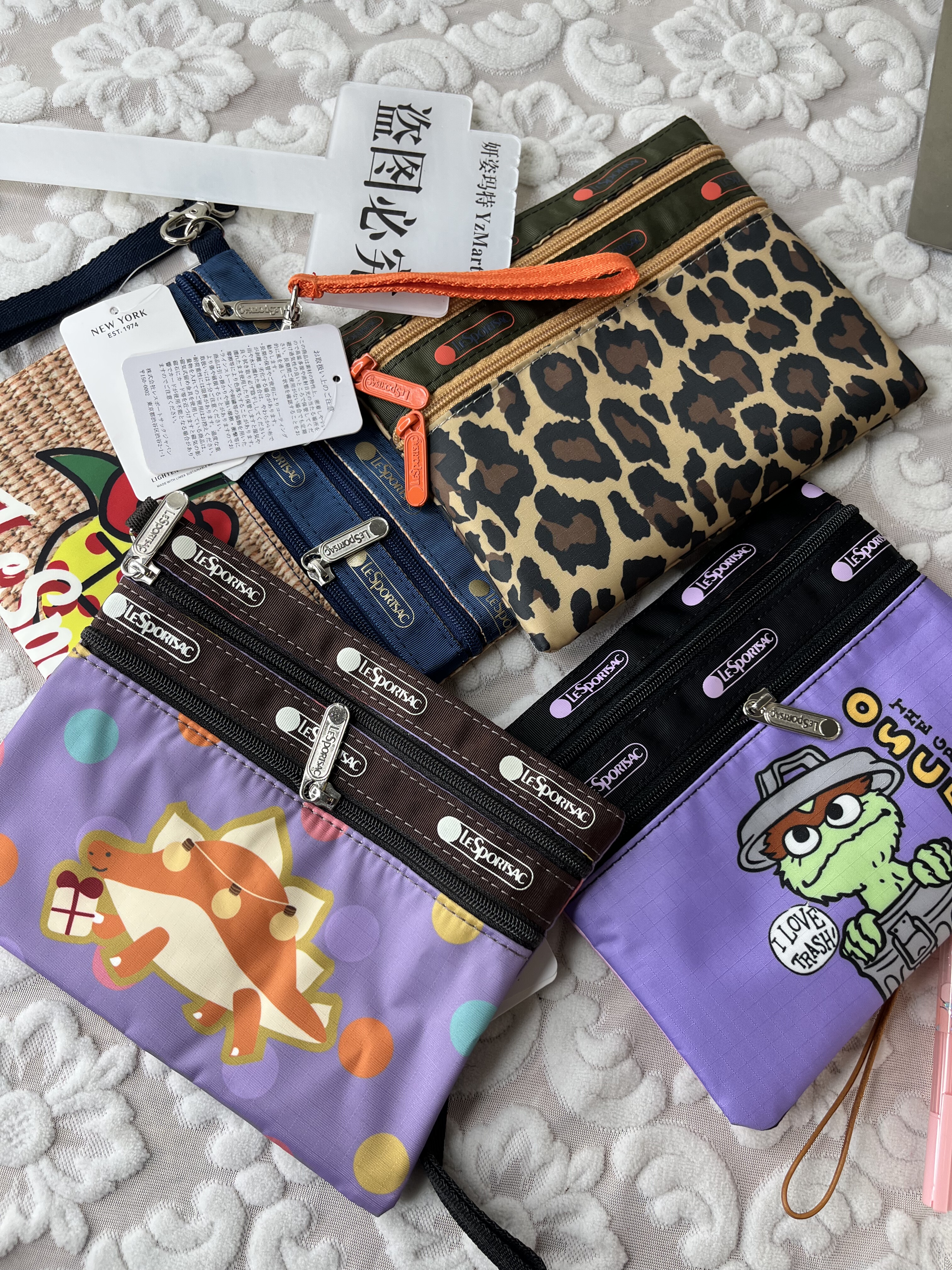 Old standard YzMart leopard print co-branded large double zipper passport bag document storage bag Sesame Street co-branded mobile phone bag