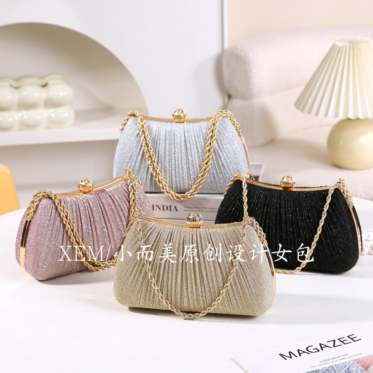 2025 new shiny pleated dinner bag, women's bag, bracelet, celebrity dress, cheongsam handbag, women's shoulder crossbody bag