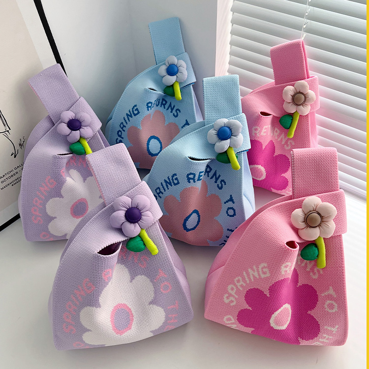 New ins cute flower knitted bag holiday souvenir gift bag commuting to work small bag casual tote bag