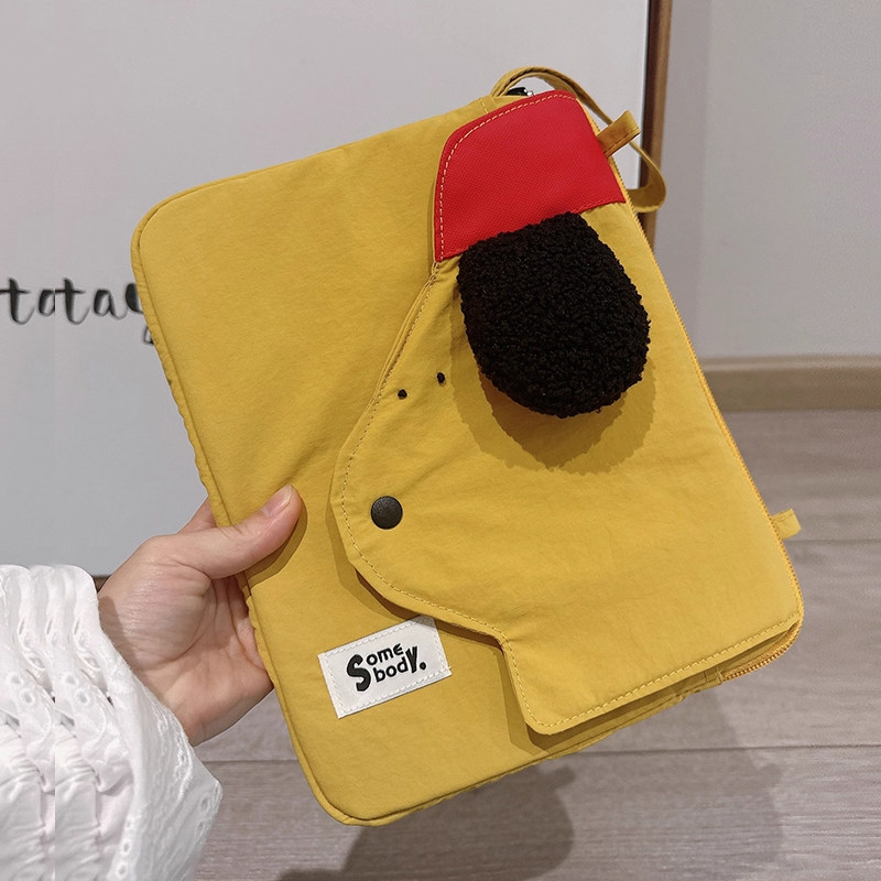 Three-color patch curly puppy Ipad bag 2025 winter new cute cartoon wrist bag versatile casual protective case