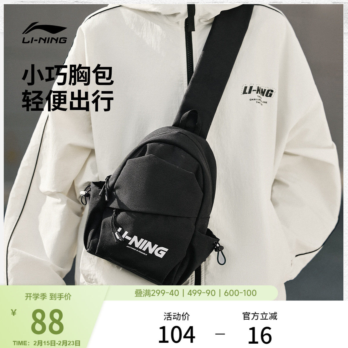 Li Ning shoulder bag men's official small light multifunctional chest bag student trend commuter sports crossbody bag for women