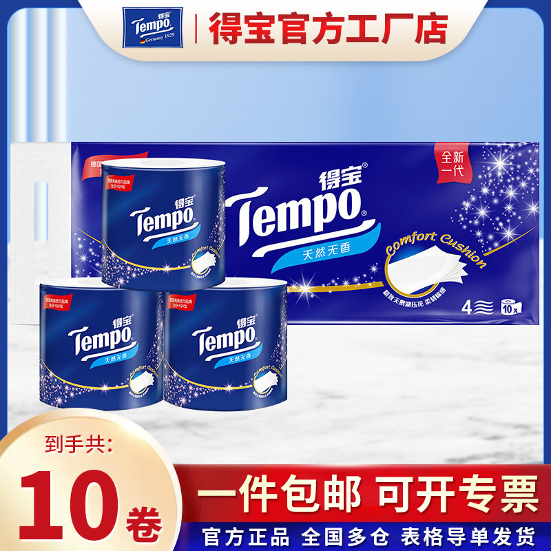 Deplo Roll Paper Tempo Toilet Paper 4 Layers 160g 10 Rolls Thickened Affordable Unscented Core Roll Paper Household Toilet Paper