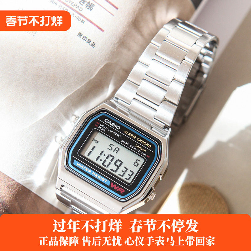 Casio casio small square watch men's watch women's watch student Internet celebrity small silver bar electronic watch A158WA-1D