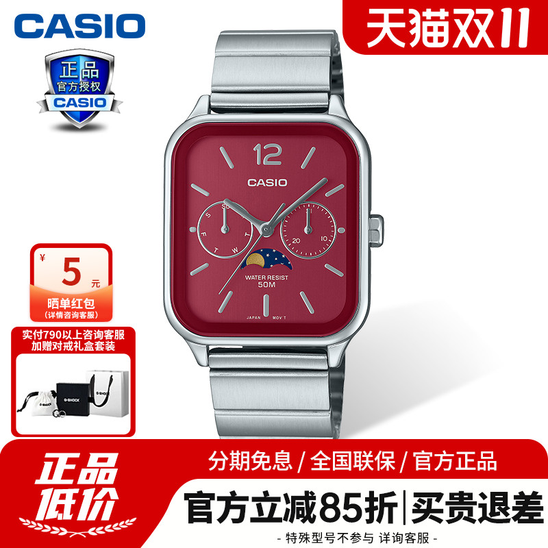 Casio watch small square moon phase official genuine student unisex waterproof quartz watch MTP-M305D