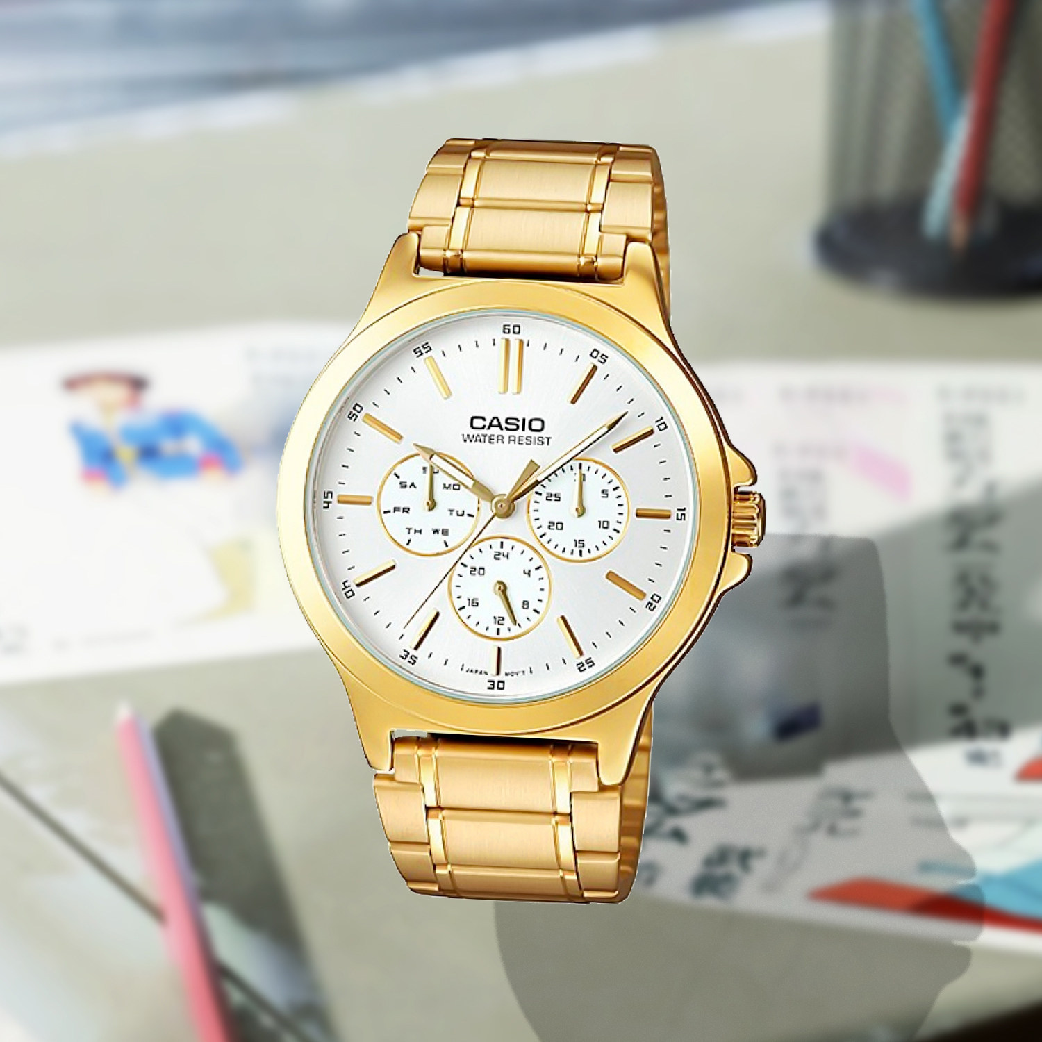 CASIO Men's Simple Waterproof Belt Trinocular Casual Quartz Watch MTP-V300G-7A