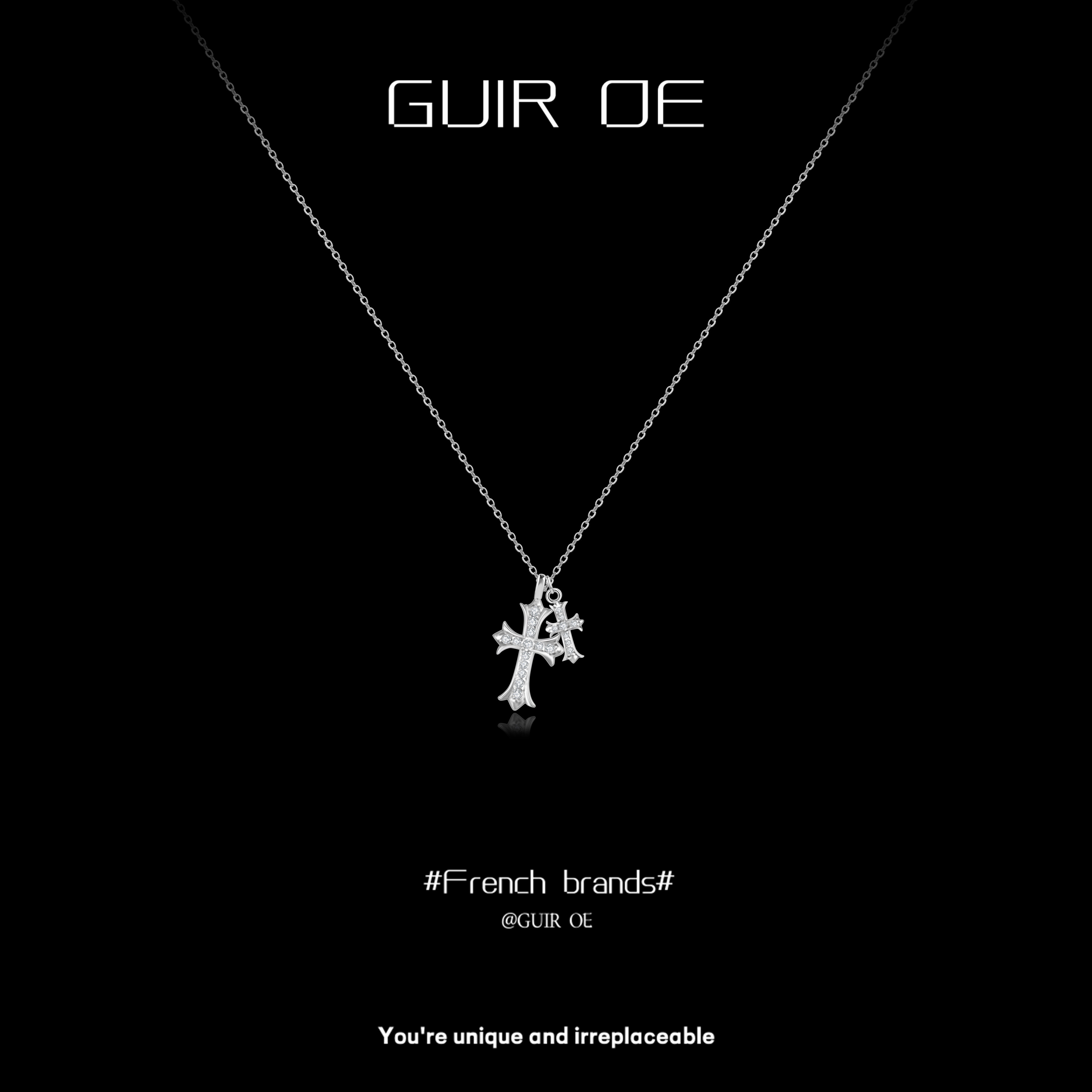 French GUIR OE "Cross" sterling silver necklace girls' cross pendant collarbone chain niche gift