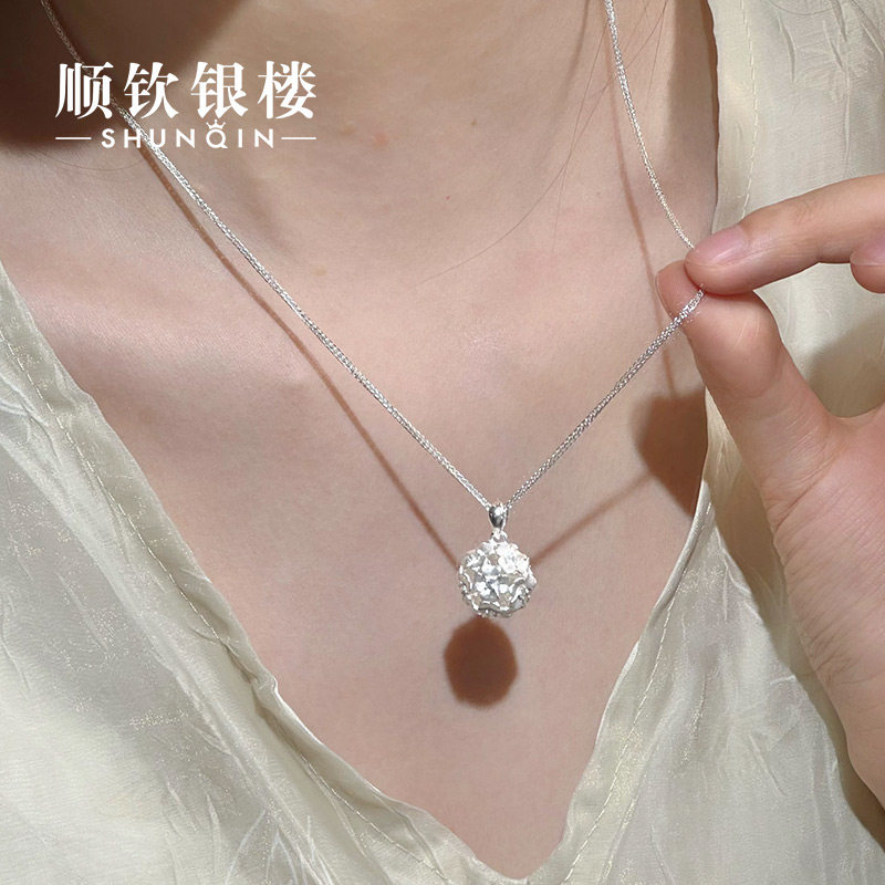 Shunqin Yinlou Foot Silver 9999 Tuanjin Necklace Flower Pendant Women's Light Luxury Temperament Exquisite Clavicle Chain New Year's Gift