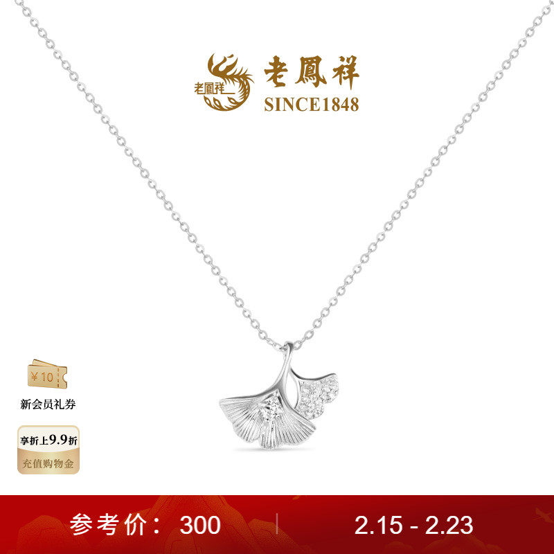 Lao Fengxiang Sansheng is fortunate to have a three-dimensional ginkgo biloba 925 silver necklace holiday women's New Year gift