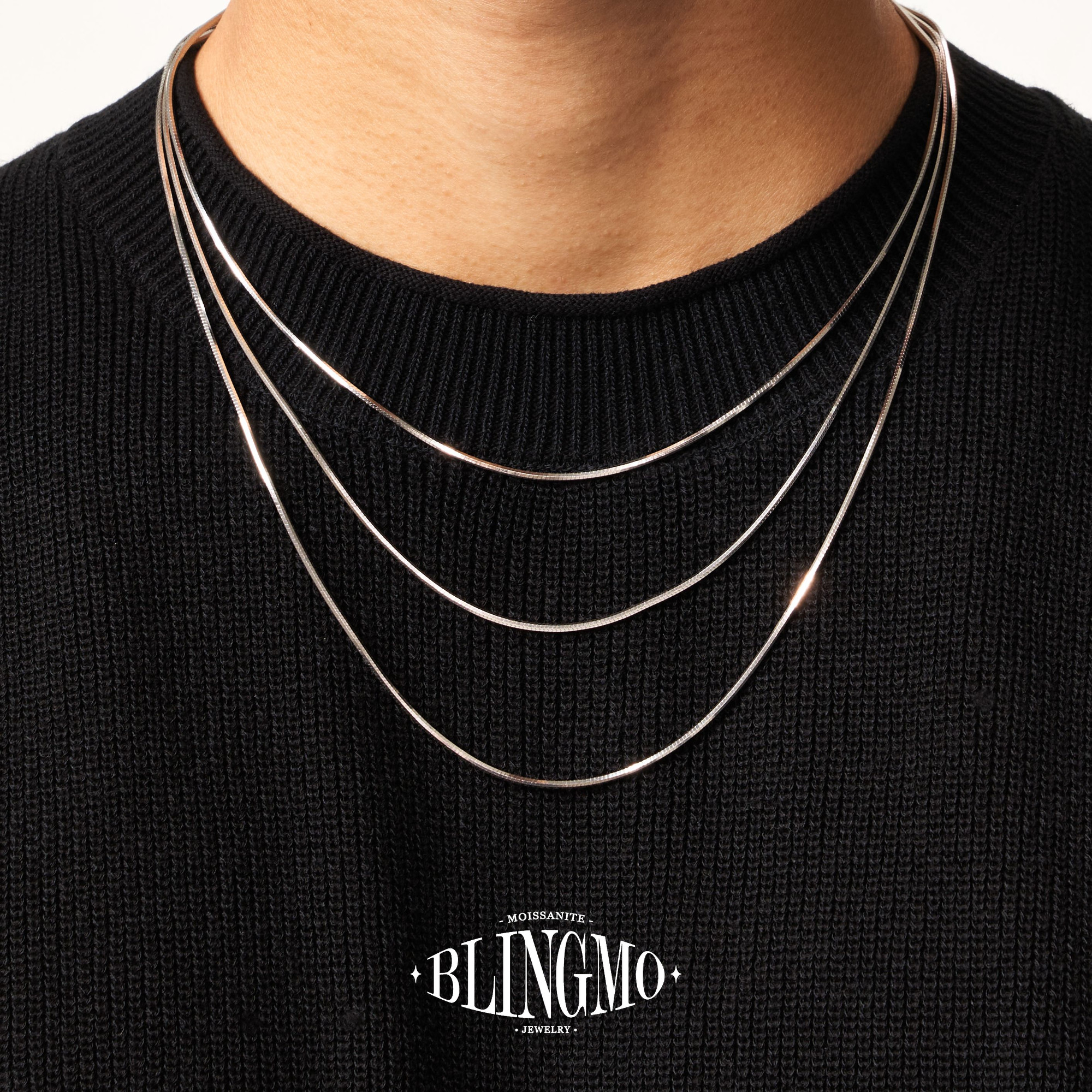 BLINGMO S925 sterling silver thick octagonal snake bone chain men's and women's layered sweater chains men's plain chains are high-end