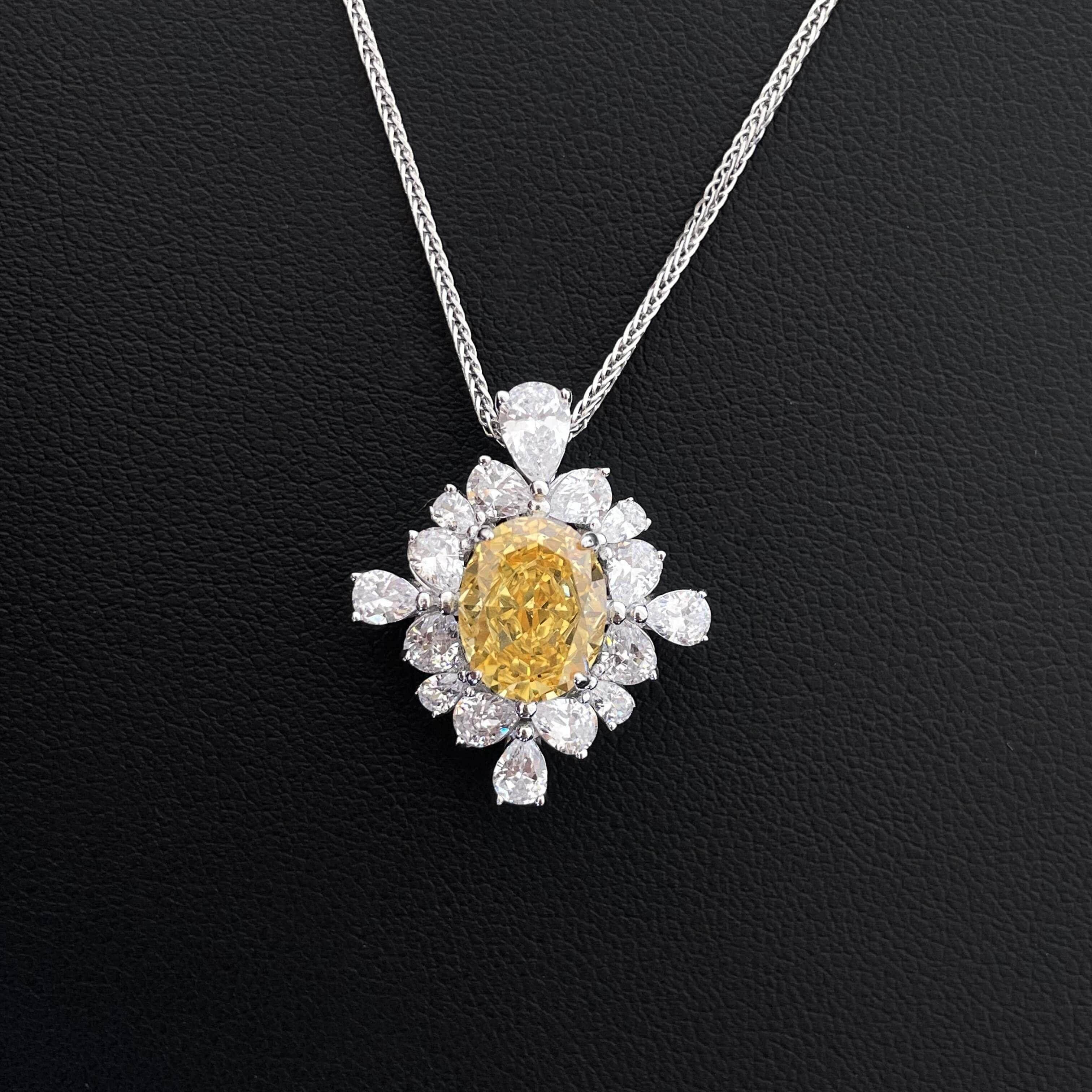 S925 sterling silver necklace women's banquet wedding high-end yellow diamond ice flower cut cultivated high carbon diamond inlaid clavicle chain