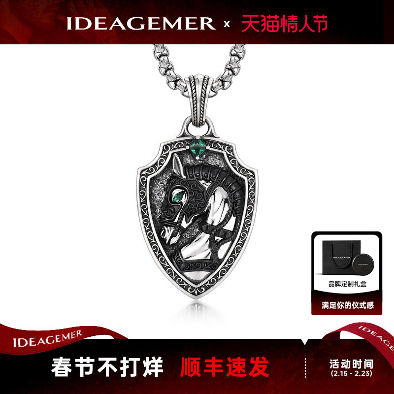 IDEAGEMER [Horse to Success] Necklace Men's High-end Ruffian Handsome Pendant Trendy Year of the Horse Year Gift