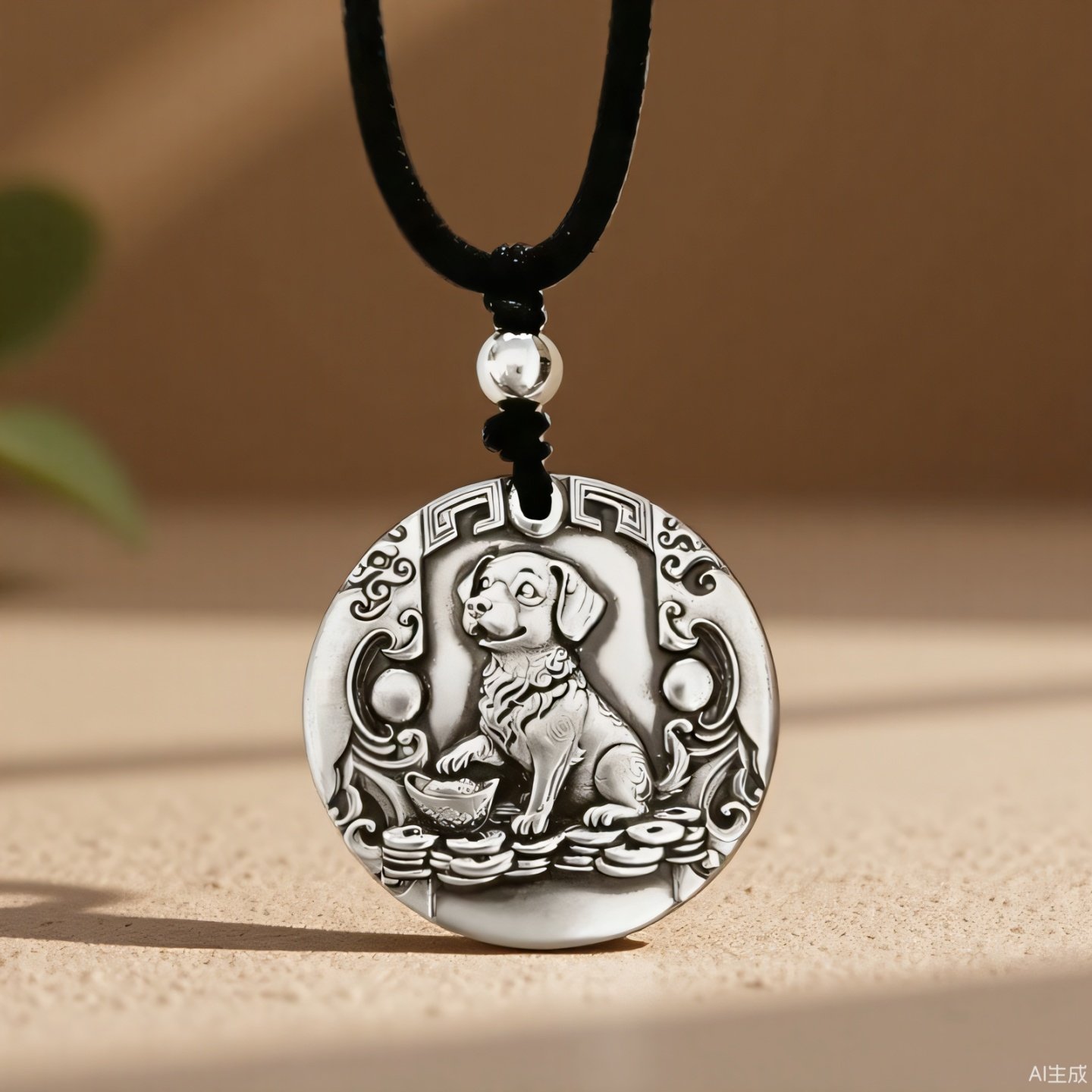 Foot silver 999 dog pendant sterling silver necklace zodiac natal year zodiac sign fortune dog round brand keychain