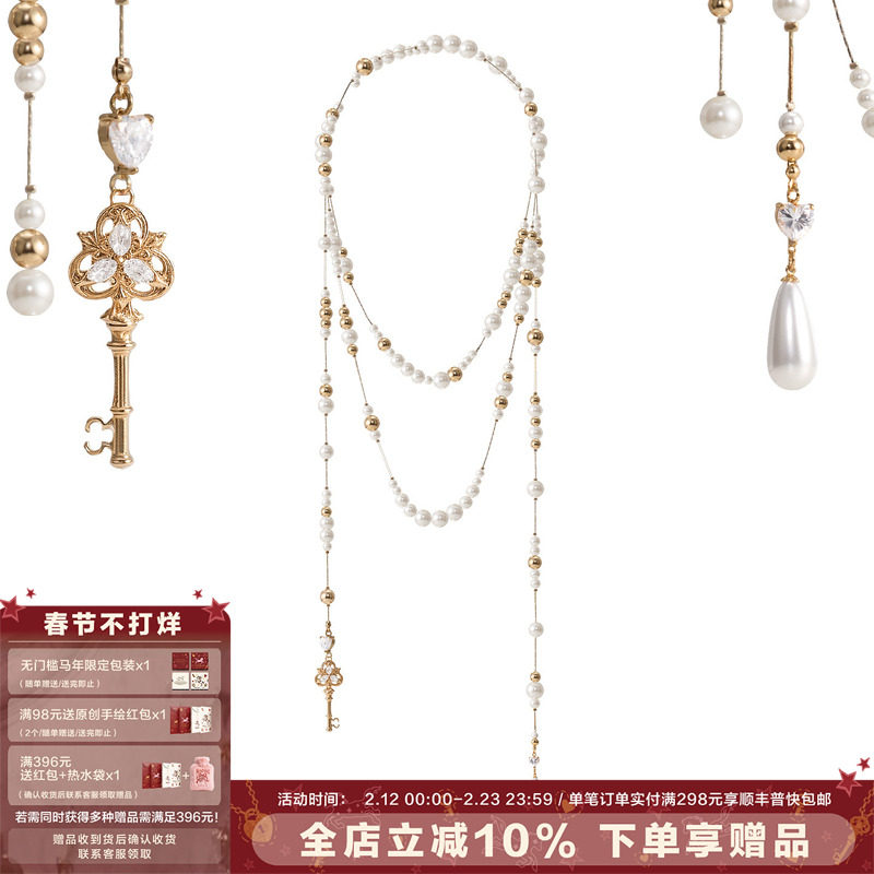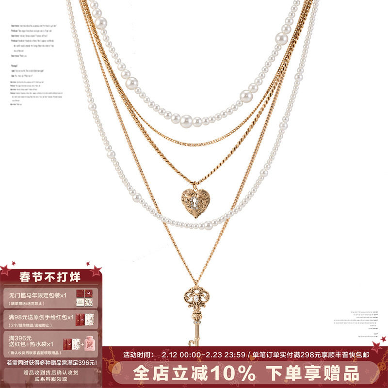 SUMIYAKI Vintage Love Lock Cylinder Series Multi-layer Pearl Necklace Niche Sweater Chain Detachable