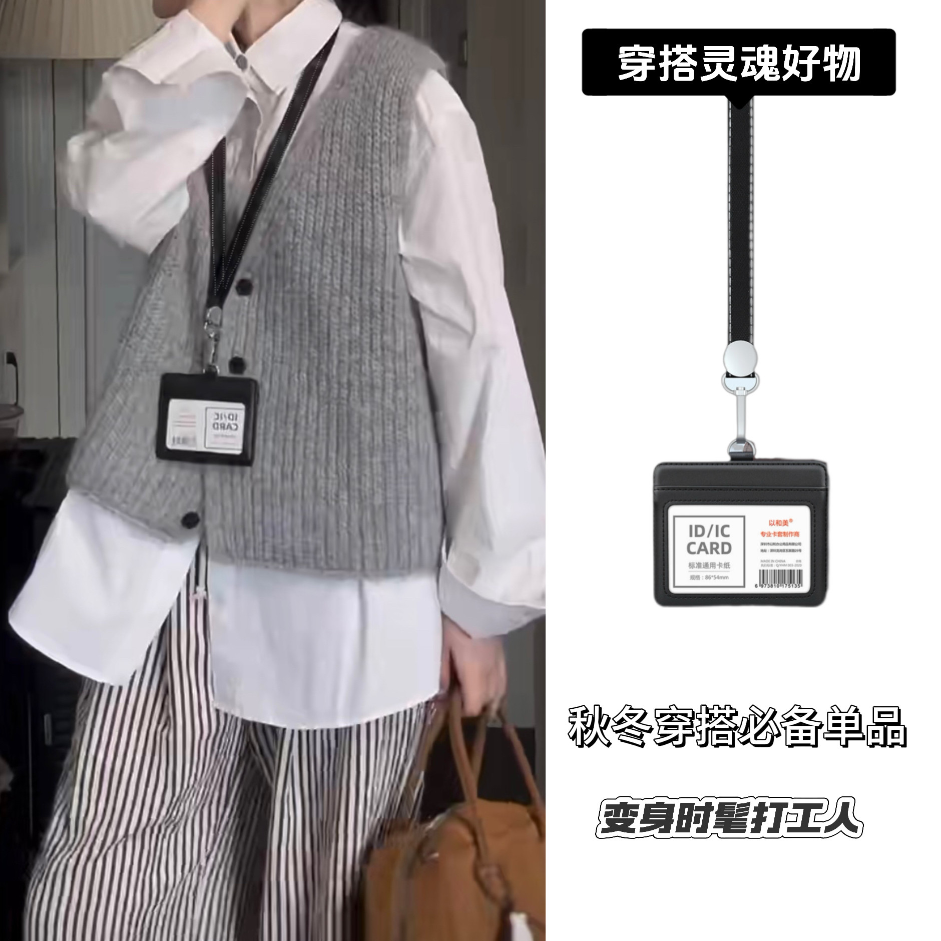 Korean Internet celebrity blogger fashion outfit work permit card holder halterneck necklace work license bus access card protective case