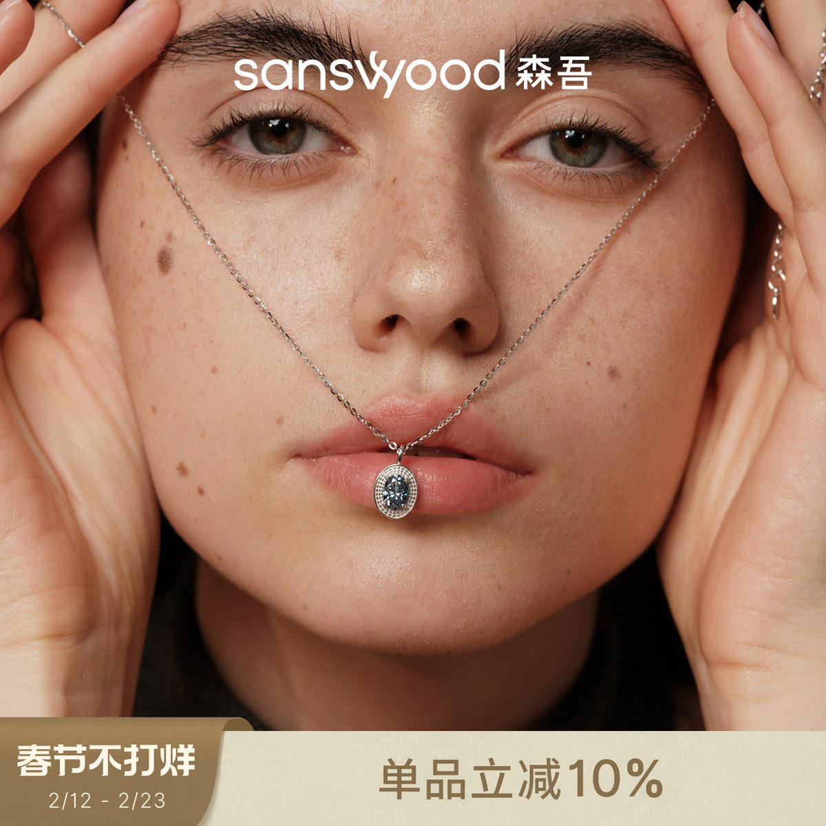 Sanswood Sengo "Darcy" high-end sense primary blues moissanite necklace women's commuter temperament clavicle chain