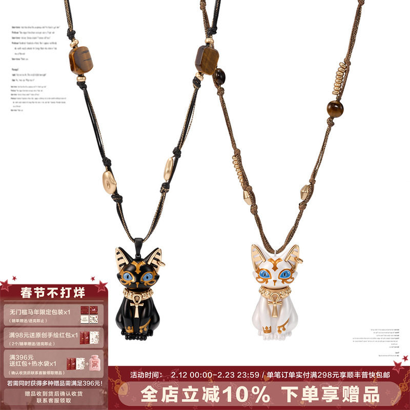 SUMIYAKI Eye of Life Pharaoh Egyptian Cat Sweater Chain Cat Anka Tiger's Eye Handmade Beaded Necklace