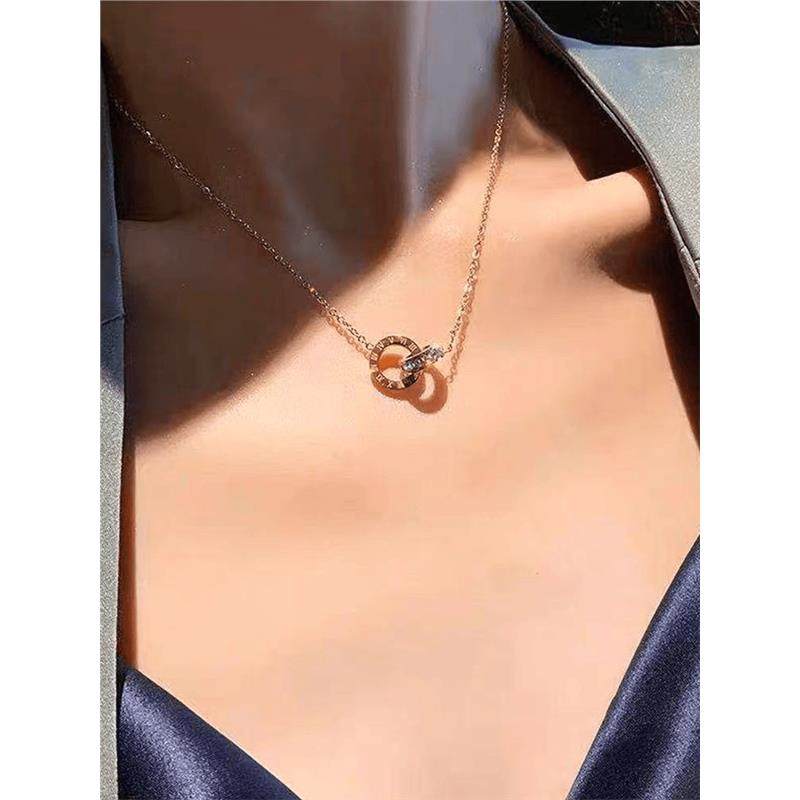 Titanium steel necklace interlocking necklace women's fashion temperament versatile collarbone chain smart niche pendant does not fade
