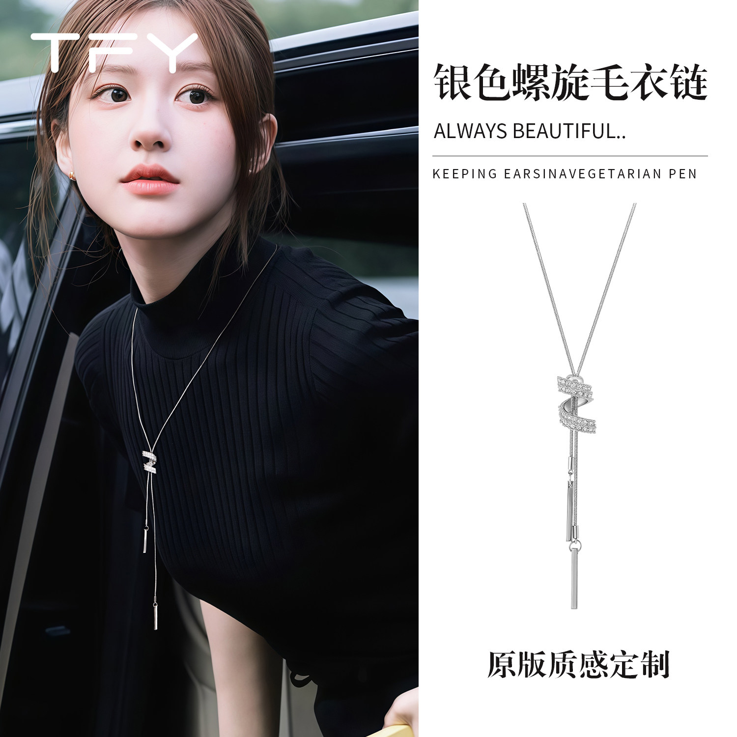 Zhao Lusi: The same spiral sweater pendant necklace women's light luxury high-end autumn and winter color does not fade long sweater chain