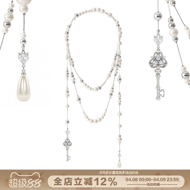 【3.8 20:00 on sale】SUMIYAKI Love Lock Cylinder Key Water Drop Broken Pearl Long Stacked Necklace
