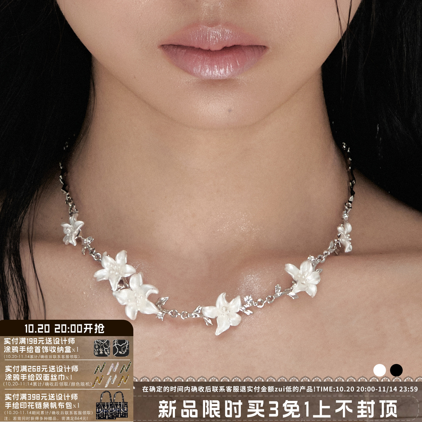 SUMIYAKI Pale Telling Series Pure White Cherry Blossom Necklace Niche Design Black and White Flower Dark Collarbone Chain
