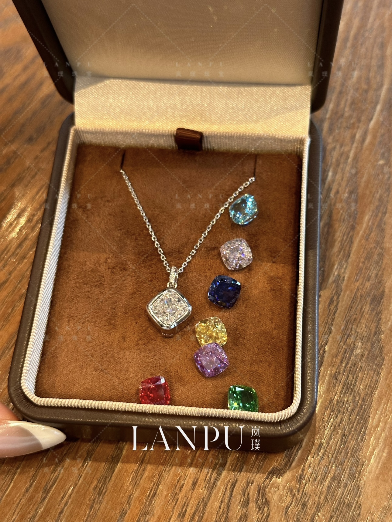 A week to change the main stone color 3-card cushion square diamond necklace, 925 silver gilded without fading