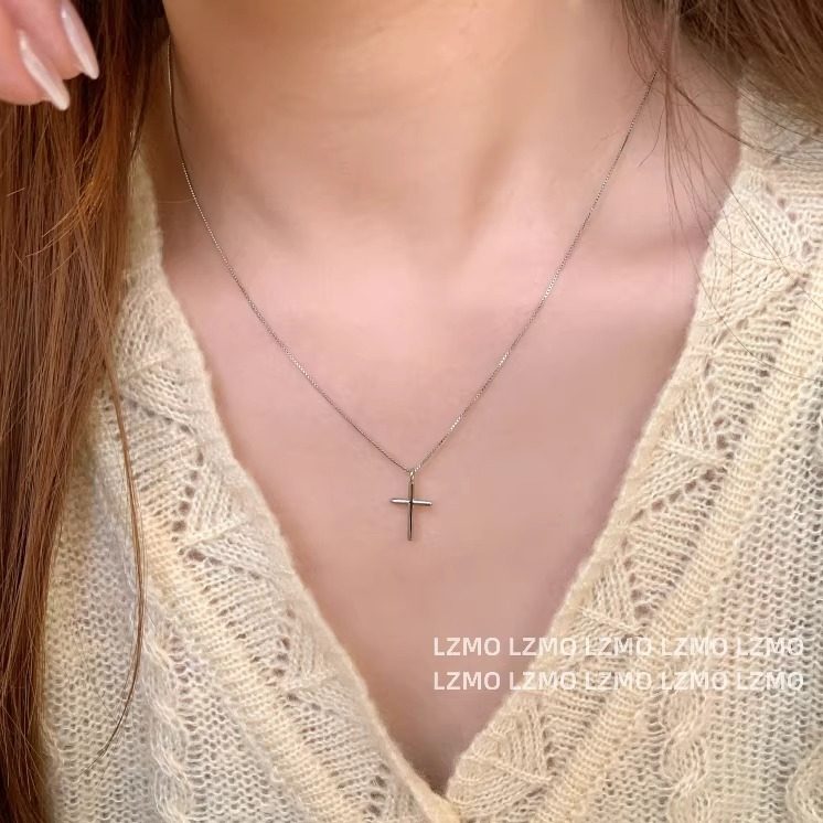 LZMO Minimalist Cross | S925 sterling silver cross necklace bracelet women's ins cold wind Japanese and Korean simple style