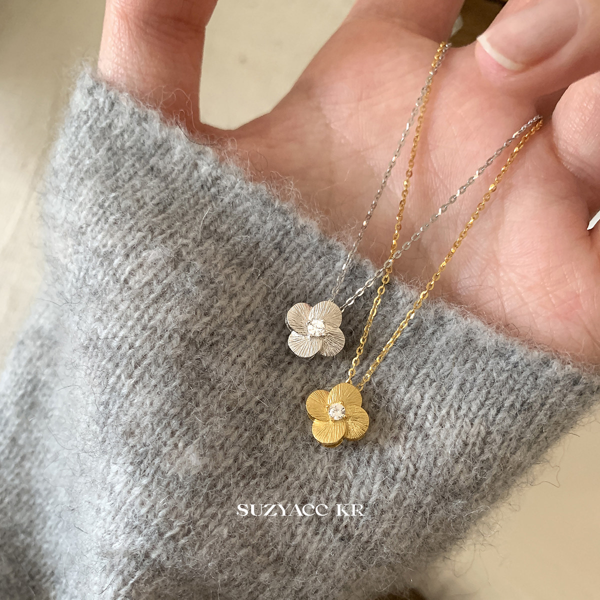 Suzyacc kr exquisite sterling silver brushed four-leaf clover necklace simple niche design layered collarbone chain necklace