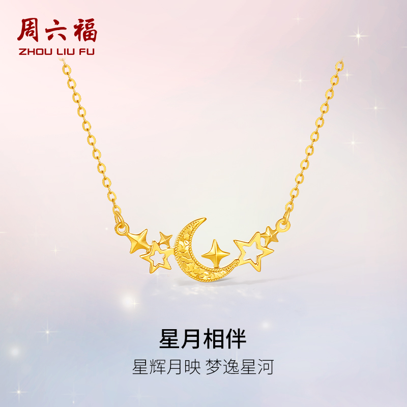 Saturday Fu gold denominated 5G pure gold sweet star love necklace romantic starry night series holiday gifts