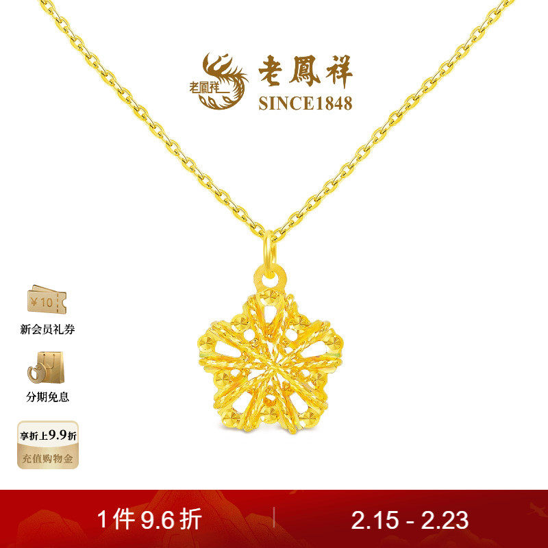 Lao Feng Xiangfan series interlocking crushed ice gold pure gold necklace priced women's New Year's gifts
