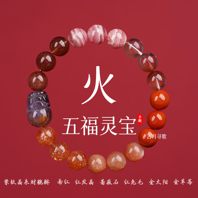 Five elements lack of fire to make up for fire, like to use fire Duobao bracelet, men's and women's natural crystal Pixiu bracelet, energy balance jewelry
