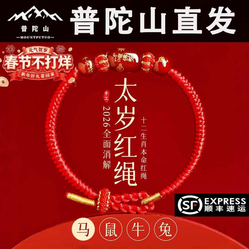 Putuo Mountain 2026 Year of the Horse Tai Sui Red Rope Natal Year Bracelet Men's and Women's Hand-Woven Rat Ox Rabbit Amulet Bracelet