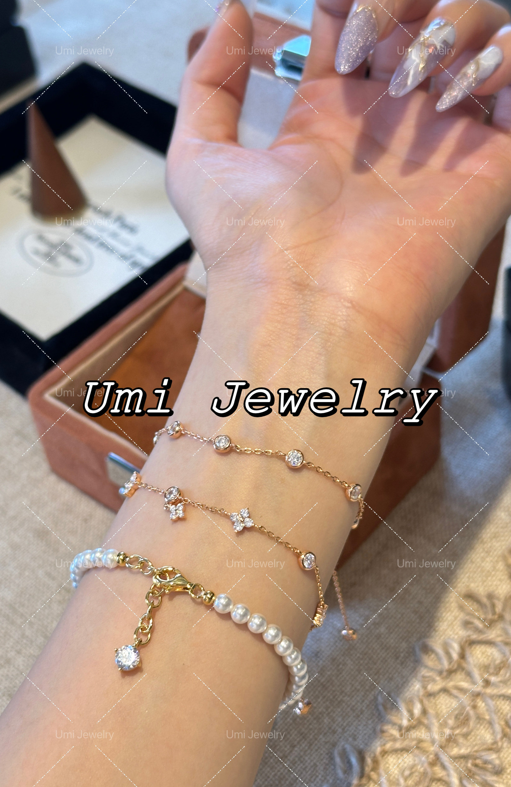 UMI Home Light Jewelry/S925 Silver Gold Plated Versatile Diamond Bubble Bead Four-Leaf Flower Bracelet Layered with a sense of luxury