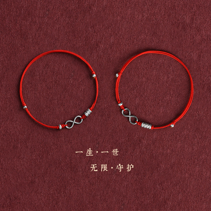 A lifetime of guarding the ultra-fine ultra-fine red rope bracelet for men and women, a pair of sterling silver transfer beads braided bracelets